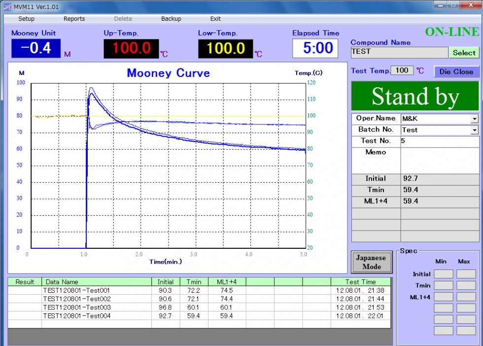 This tester is in conformity with ISO 289, JIS K 6300-1, and ASTM D 1646 etc...