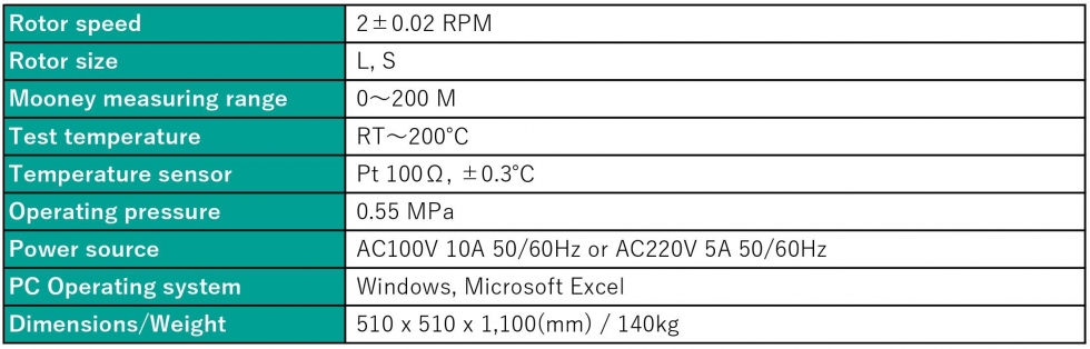Placing the importance on the operability and the repeatability of data, our mooney viscometer is developed. Mooney viscosity and scorch time for un-vulcanized rubber can be measured automatically with this tester.