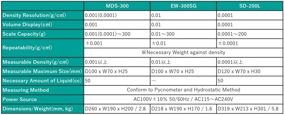 Easy density measurement of not only solid, and liquid sample density, but also new