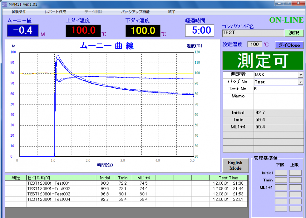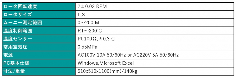 このムーニー粘度計は、操作性とデータの再現性に重点をおいて開発しました。未加硫ゴムのムーニー粘度、スコーチ特性を自動測定します。対応主要規格の、ISO 289、JIS K 6300-1、ASTM D 1646等に準拠しています。